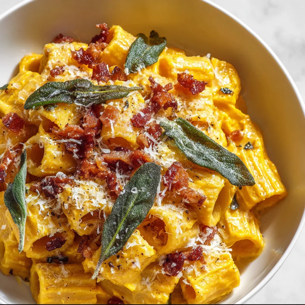 If you’re the kind of person who wants flavor without the fuss, this pasta will become your new obsession. The creamy pumpkin sauce clings beautifully to every ridge of rigatoni or penne, while the sage infuses the entire dish with its warm, herby fragrance. Toss in some crispy bacon bits and a sprinkle of freshly grated Parmesan, and you’ve got a five-star restaurant-level meal right in your kitchen.