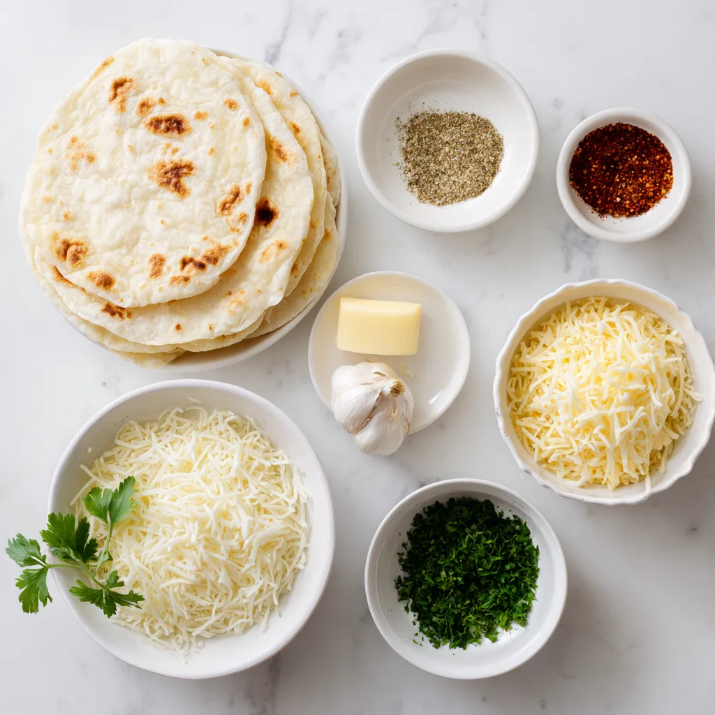Tortillas date back thousands of years in Mesoamerican cuisine, traditionally made from corn. Using them as a garlic bread base is a modern fusion twist that blends global comfort foods into one crave-worthy bite.