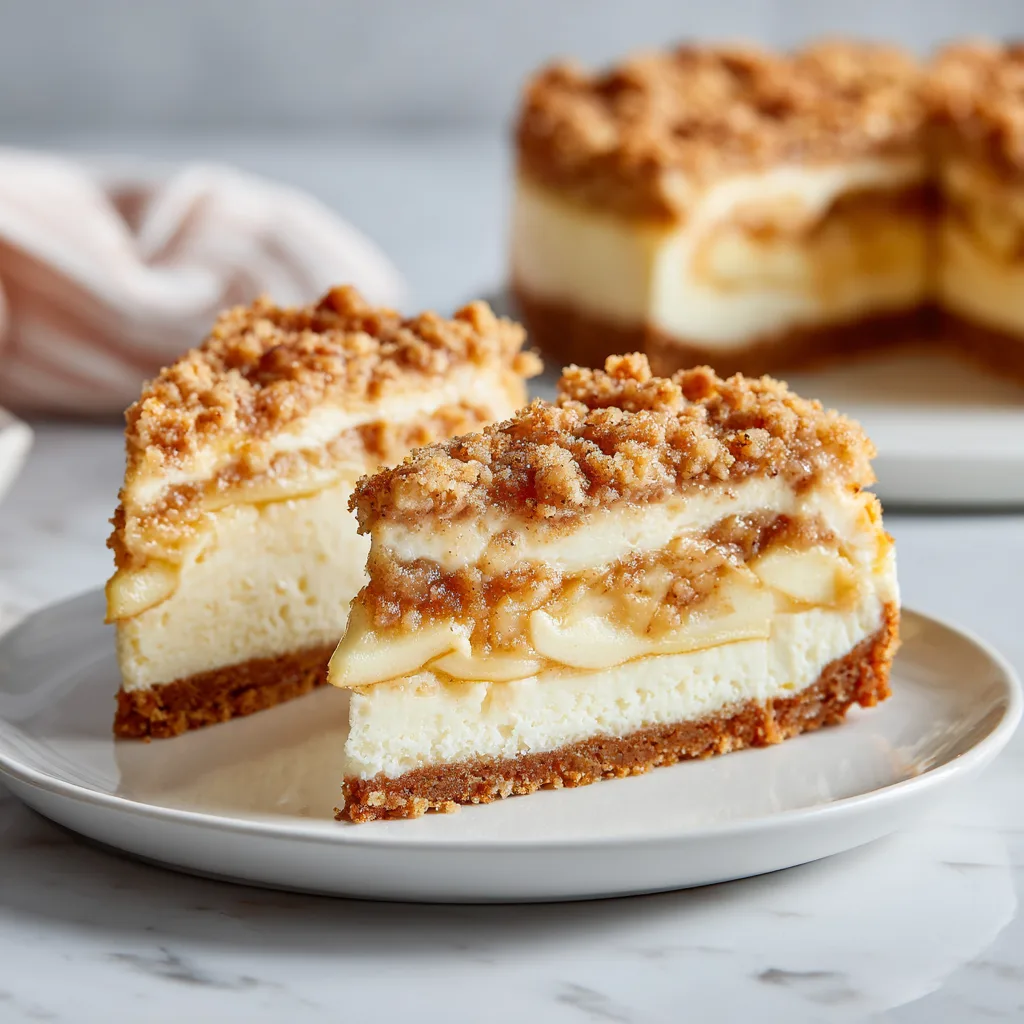 Apple-based desserts date back centuries, with early versions of apple crisps appearing as economical alternatives to pie during wartime rationing. Combining apples with cheesecake is a modern twist that celebrates both tradition and indulgence.
