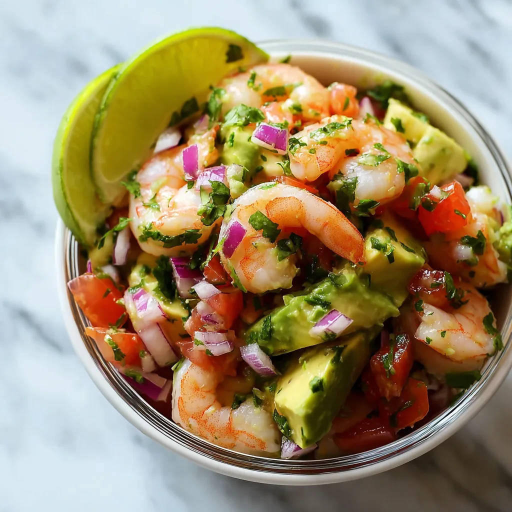 A bright, refreshing ceviche made with shrimp, creamy avocado, lime juice, cilantro, jalapeño, and tomatoes. Perfect for summer meals and no-cook dinners.