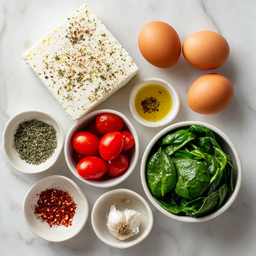 The rise of baked feta recipes isn’t accidental. Feta cheese, when baked, softens into a creamy, tangy centerpiece that pairs beautifully with eggs and vegetables. When combined with spinach and tomatoes, it creates a dish that feels rustic, fresh, and satisfying without being heavy.