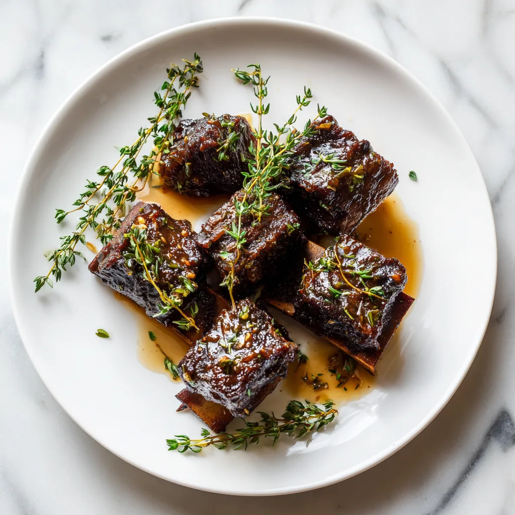 - Serve: Spoon sauce over the ribs and garnish with fresh thyme or parsley. Serve alongside creamy mashed potatoes, roasted vegetables, or buttered noodles for a complete meal.