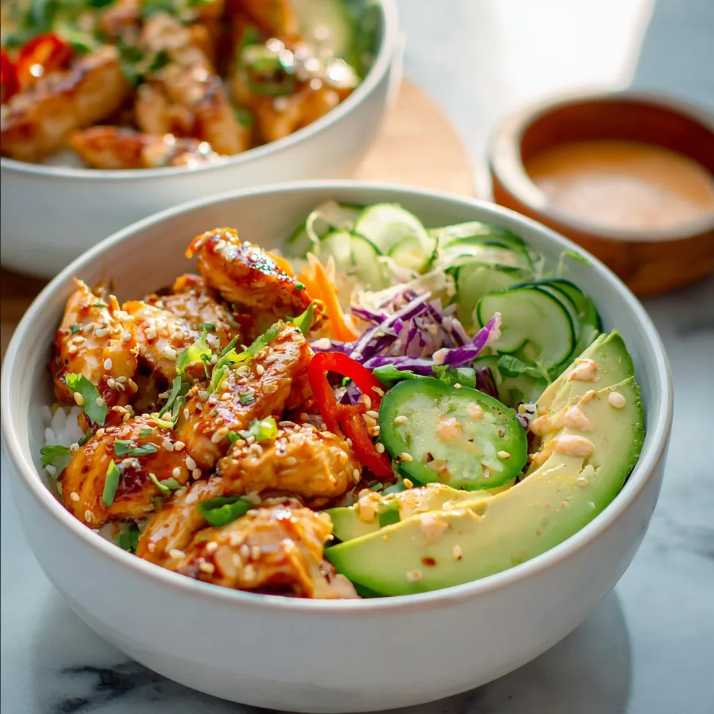 This Bang Bang Chicken Bowl represents more than just a meal – it’s a celebration of how global flavors can be made accessible, how healthy eating can be exciting, and how the simple act of arranging ingredients thoughtfully can transform everyday cooking into something extraordinary. It reminds us that the best comfort food often comes from understanding how different elements work together to create something greater than the sum of its parts.