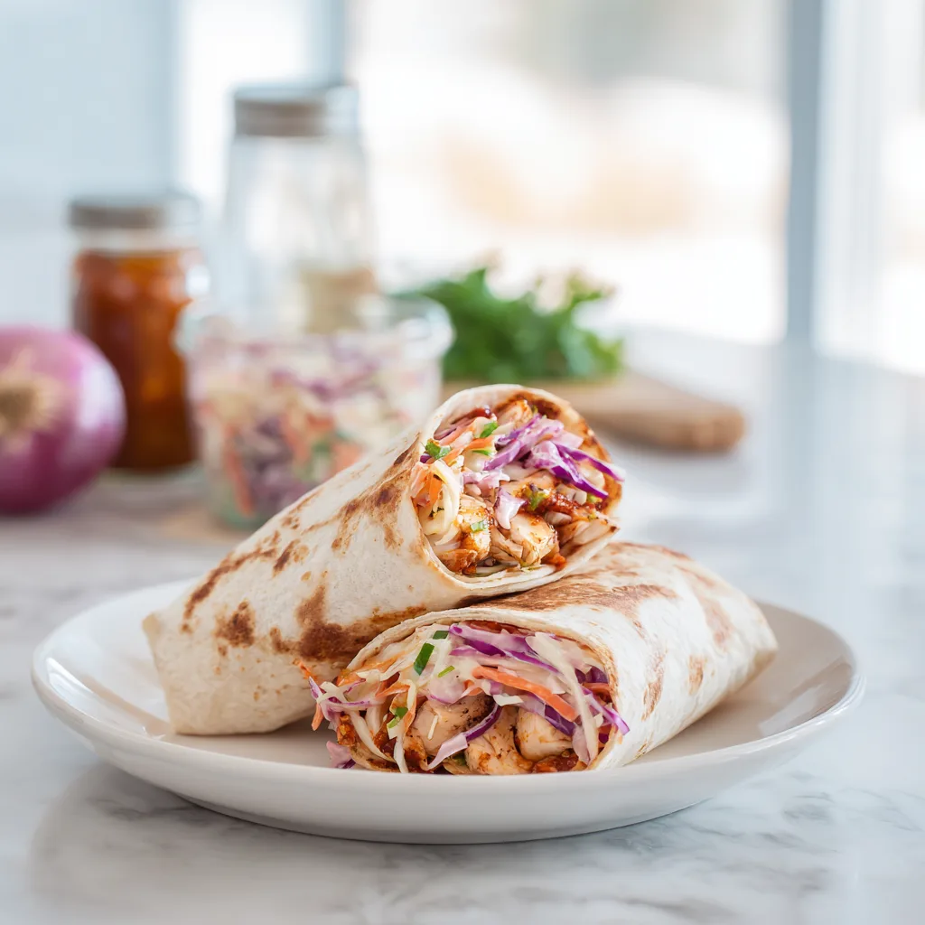 A quick, flavorful wrap featuring BBQ chicken and creamy coleslaw rolled in a soft tortilla. Perfect for lunches, picnics, or easy weeknight dinners.