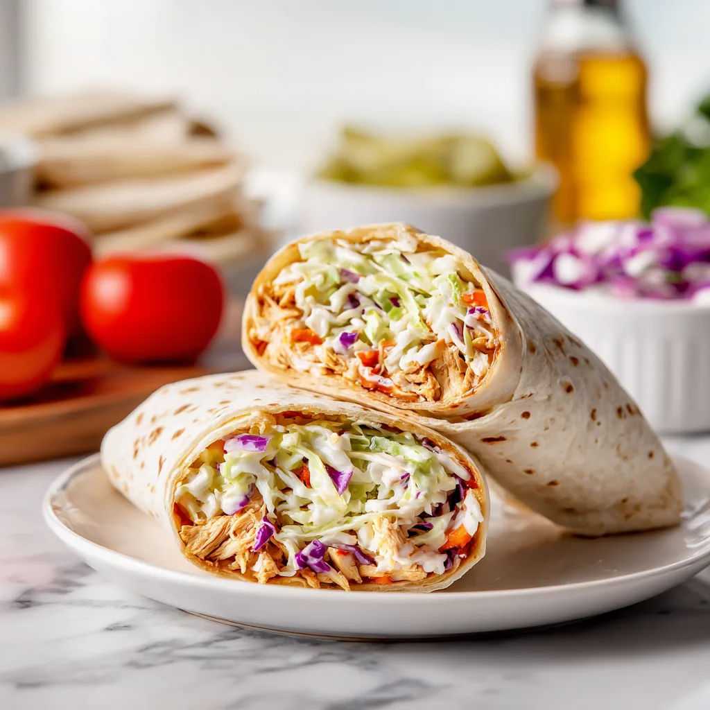 A quick, flavorful wrap featuring BBQ chicken and creamy coleslaw rolled in a soft tortilla. Perfect for lunches, picnics, or easy weeknight dinners.