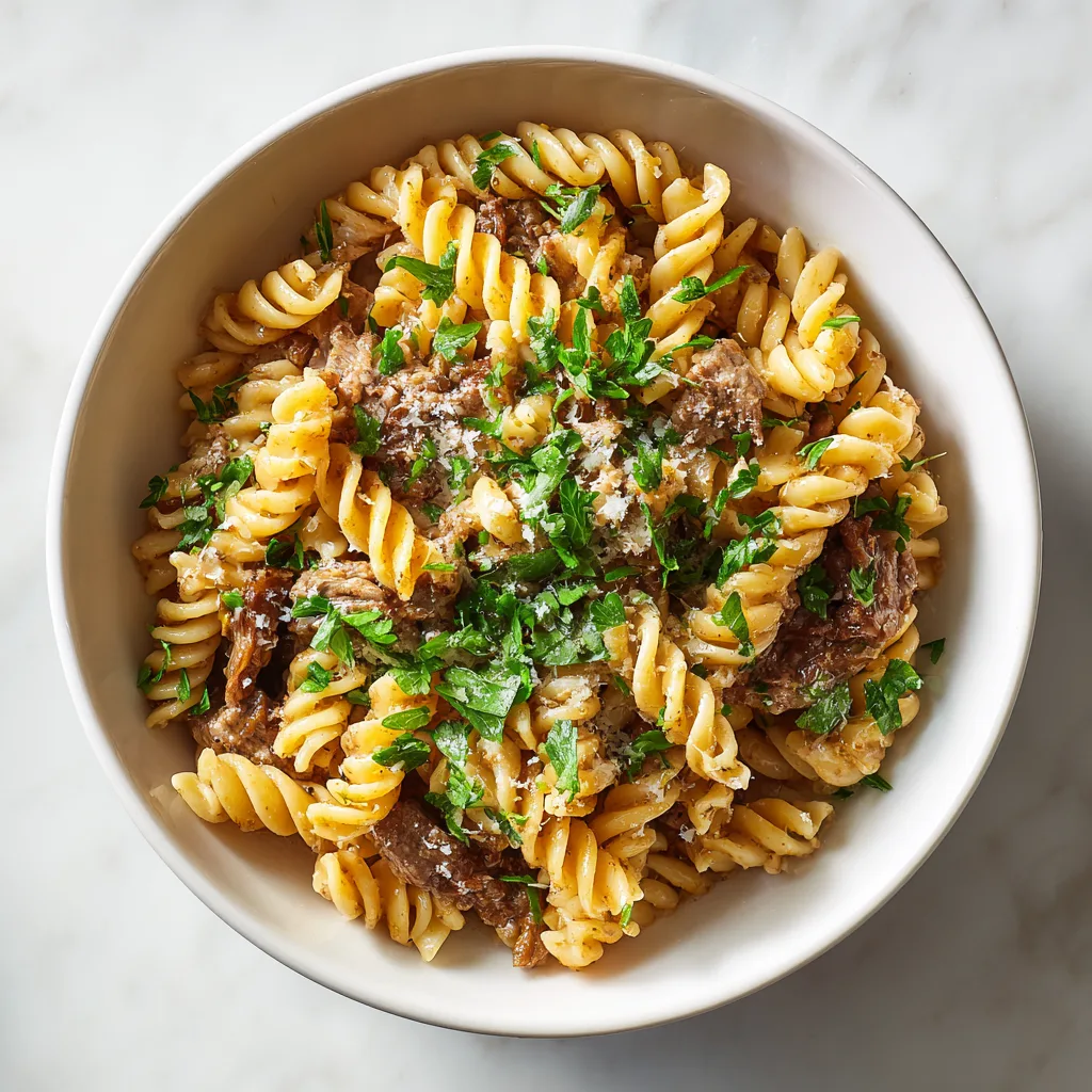 Beef and Rotini in Garlic Parmesan Sauce: A Comforting Weeknight Dinner