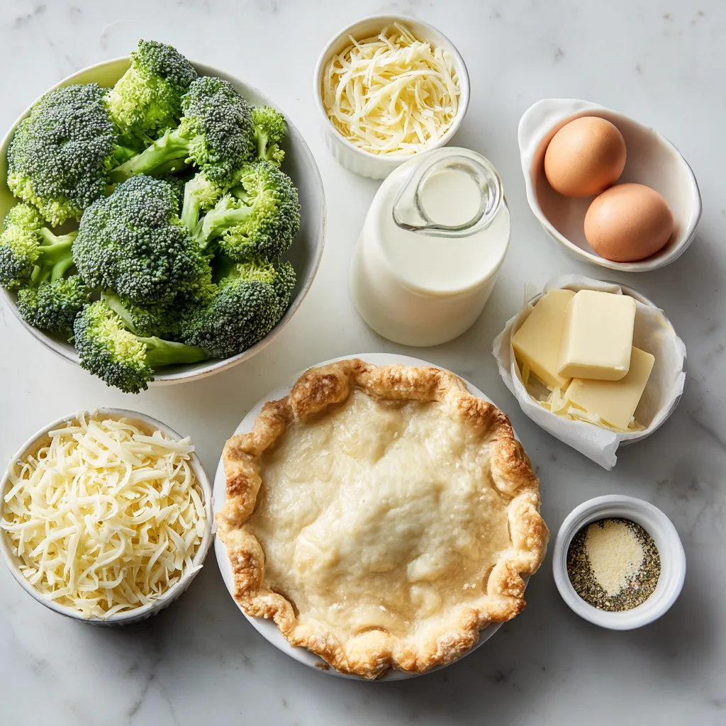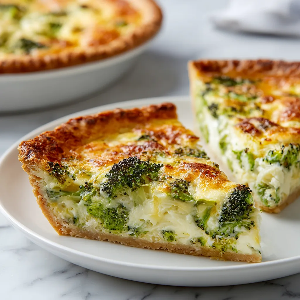 A creamy, savory quiche filled with tender broccoli and melted cheese in a flaky crust.