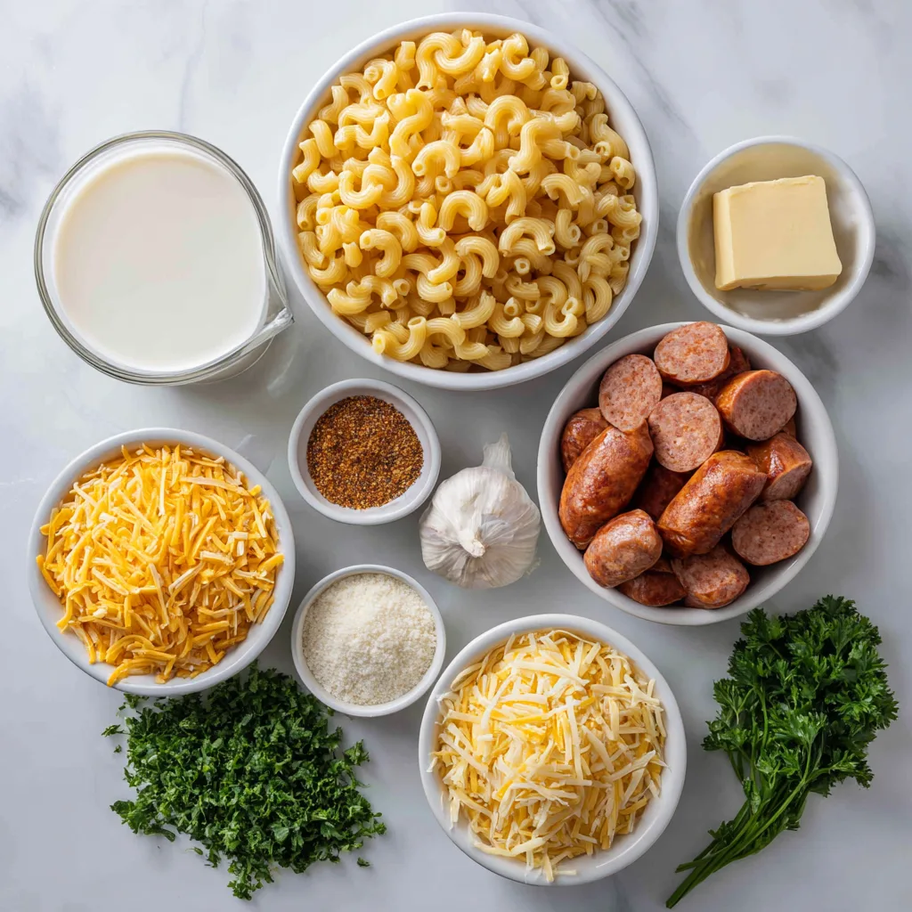 Bring a large pot of salted water to a boil. Cook the macaroni just until al dente, about 7–8 minutes. Drain, rinse lightly, and set aside. - Sauté the Sausage: