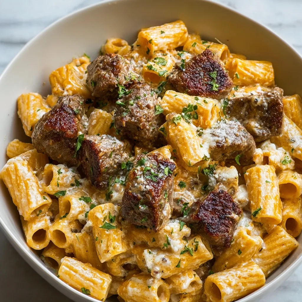 This dish delivers everything you want from a weeknight dinner or indulgent weekend meal: deep savory notes from the steak, cozy creaminess from the sauce, little kicks of Cajun heat, and the hearty comfort of al dente rigatoni. It’s bold, it’s comforting, and it’s surprisingly simple to make — ready in under 35 minutes.