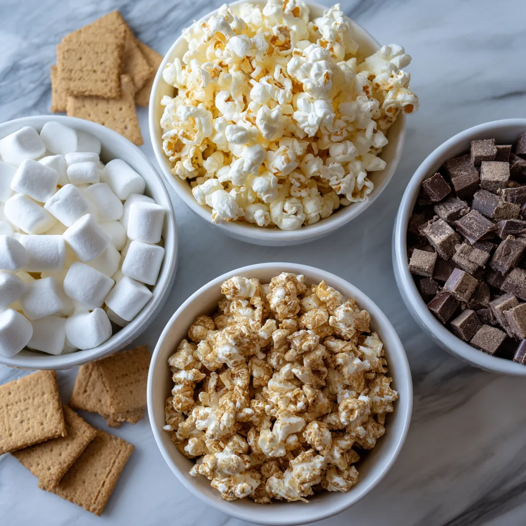 This recipe takes the best parts of a campfire s’more and makes them snackable. Instead of dealing with sticky fingers and a fire pit, you get bite-sized pieces of sweet, crunchy goodness. The balance of textures is key: soft marshmallows, melty chocolate, crumbly graham crackers, and airy popcorn.