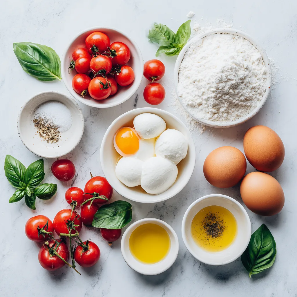 5. Fold in the Caprese flavors: stir in mozzarella, cherry tomatoes, and chopped basil. The batter should be thick but spreadable.