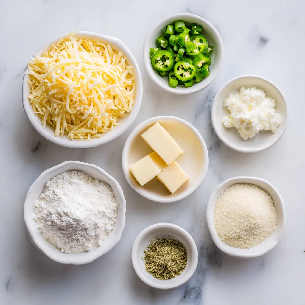 Shortbread is traditionally made with very few ingredients: butter, flour, and a small amount of sugar. That simplicity is exactly what makes it the perfect canvas for savory flavors. In this recipe, rich unsalted butter provides that signature melt-in-your-mouth texture, while sharp cheddar cheese adds depth and saltiness. Fresh jalapeños bring a subtle heat that doesn’t overpower but keeps things interesting.