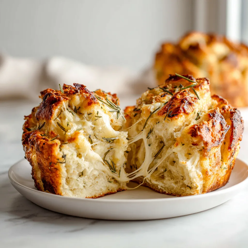 This pull-apart loaf balances rustic charm with indulgent flavor. Soft, fluffy bread layers are brushed generously with garlic butter, tucked with stretchy cheese, and perfumed with rosemary that crisps gently in the oven. The result is golden on the outside, pillowy inside, and irresistibly savory from edge to edge.