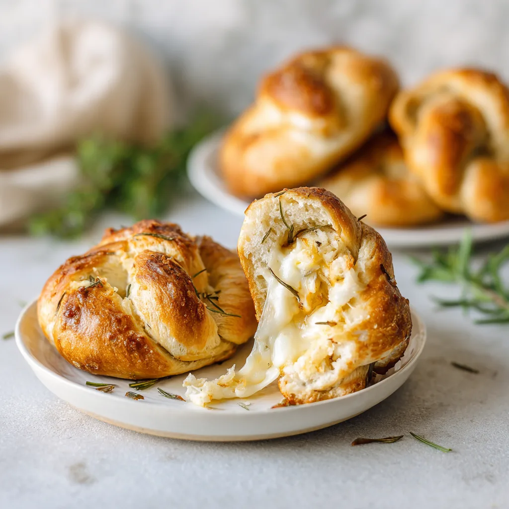Soft, golden pretzels stuffed with melted cheese and infused with aromatic rosemary for a bakery-style treat at home.