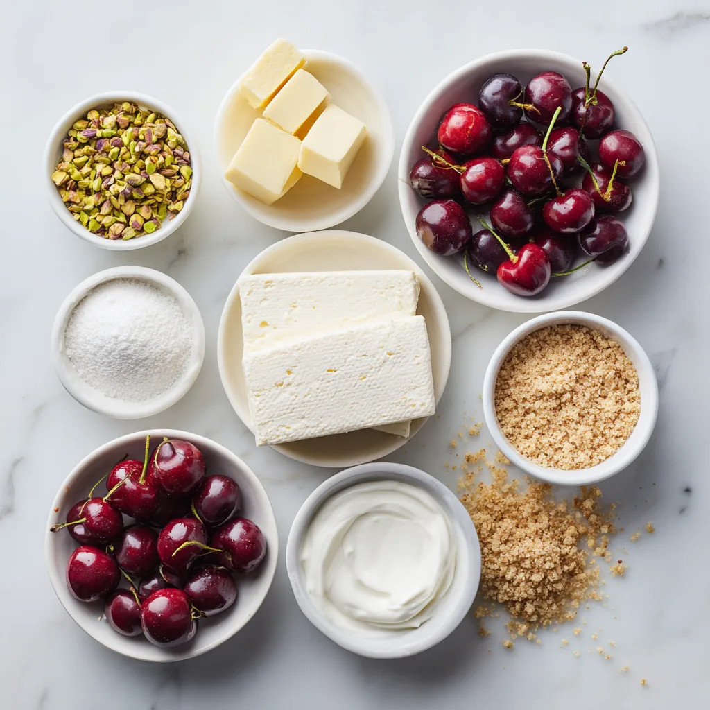 A great crust should be buttery, sturdy, and slightly crisp. Graham crackers give you that classic cheesecake aroma while also pairing beautifully with cherries and pistachios. The crust is baked briefly to set, ensuring it doesn’t turn soggy under the creamy filling.