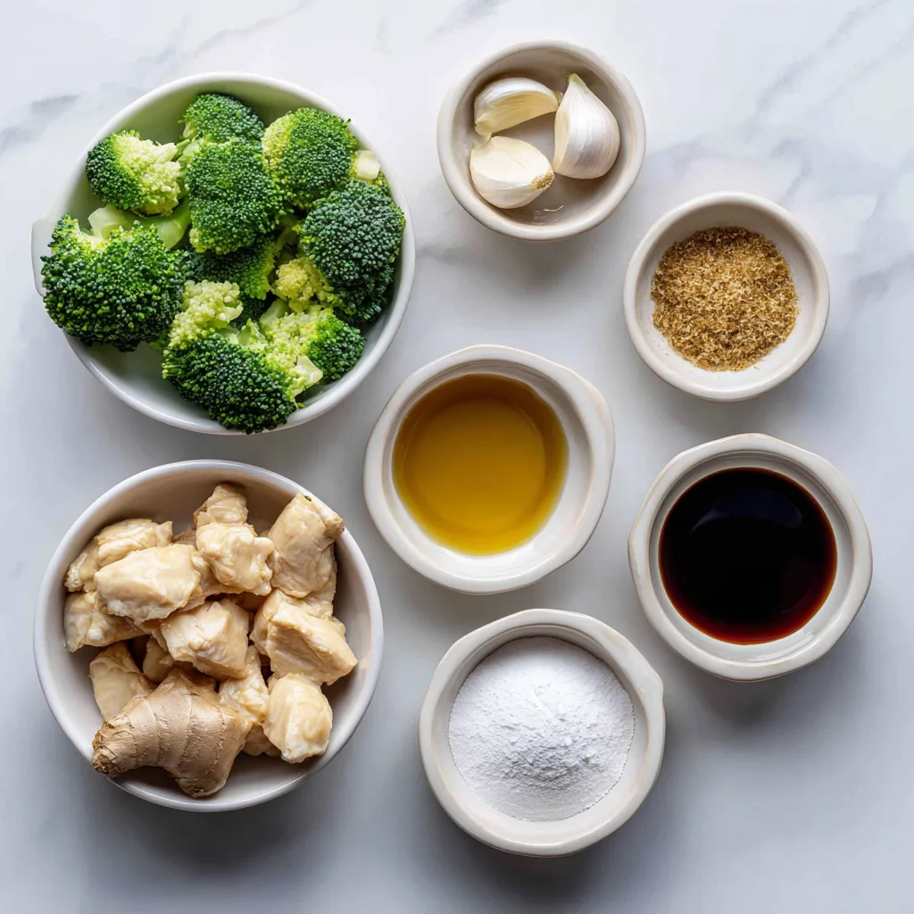 - Combine broccoli and chicken: Add blanched broccoli to the skillet and toss with garlic and ginger for 1–2 minutes. Return chicken to the pan.