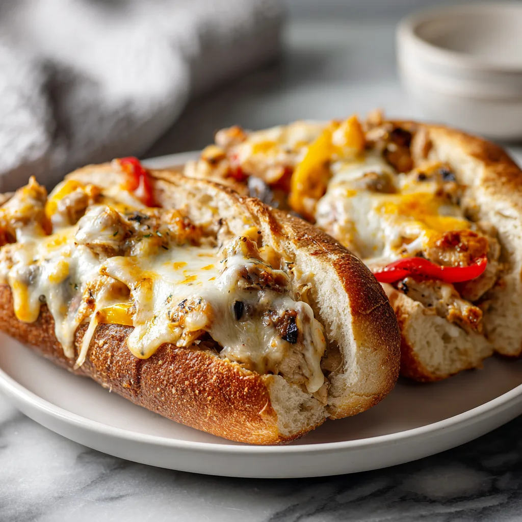- Layer chicken and vegetables on rolls, top with cheese, and place under broiler 1–2 minutes until melted and bubbly.