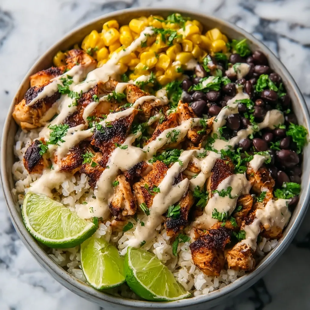 Chipotle Chicken Bowl with Black Beans, Corn & Creamy Chipotle Sauce