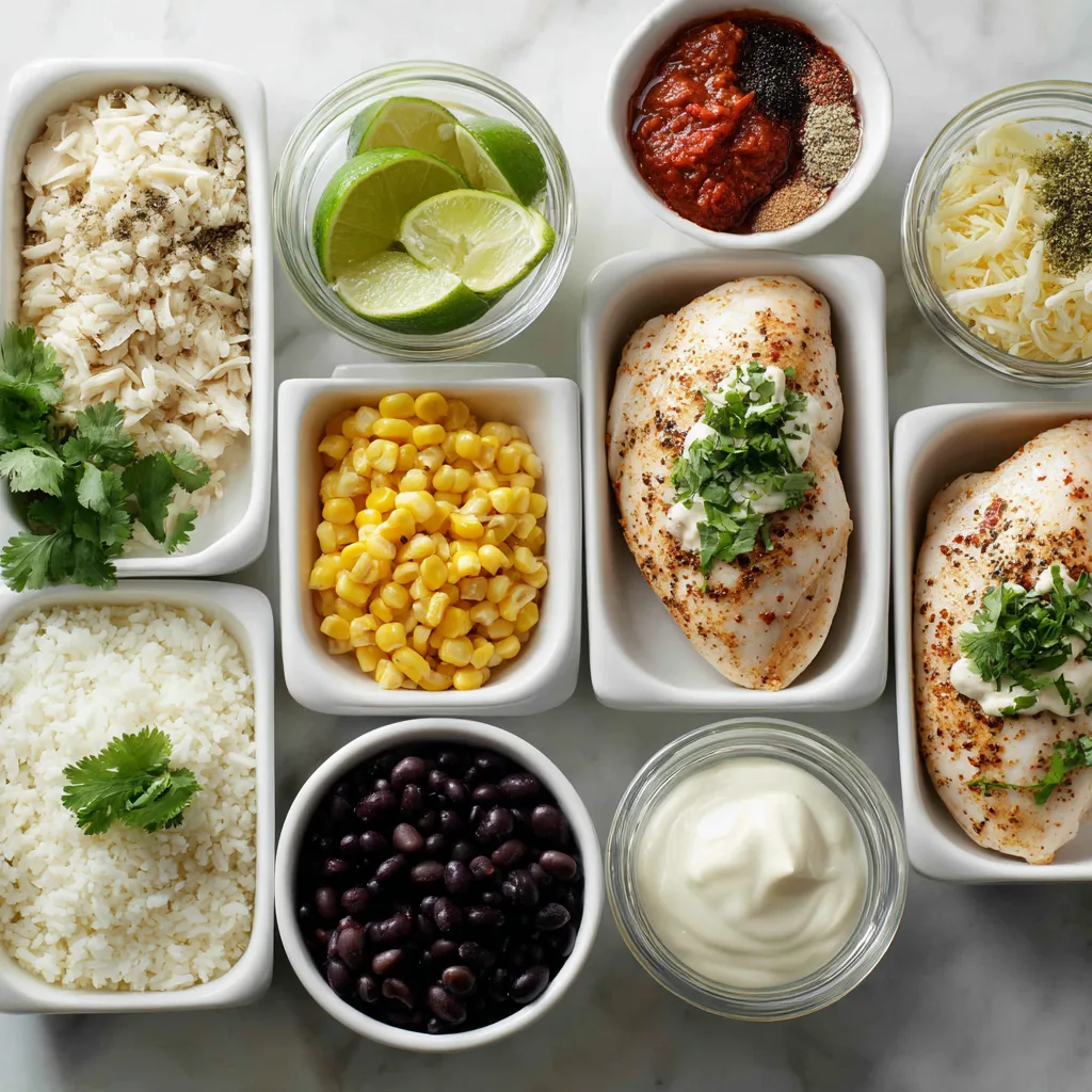 - Assemble bowls with rice, chicken, beans, corn, tomatoes, and avocado.