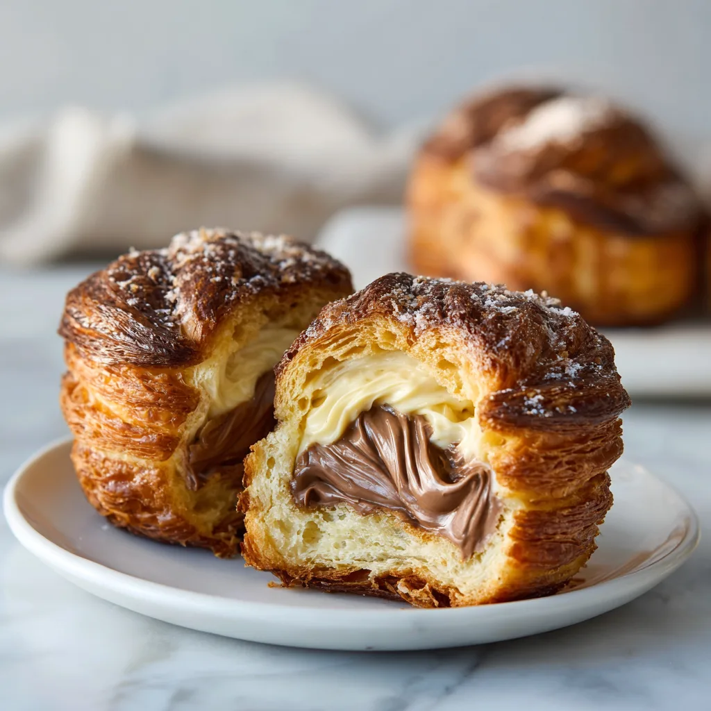 Flaky puff pastry cruffins filled with rich, creamy chocolate custard for a bakery-style indulgent treat.