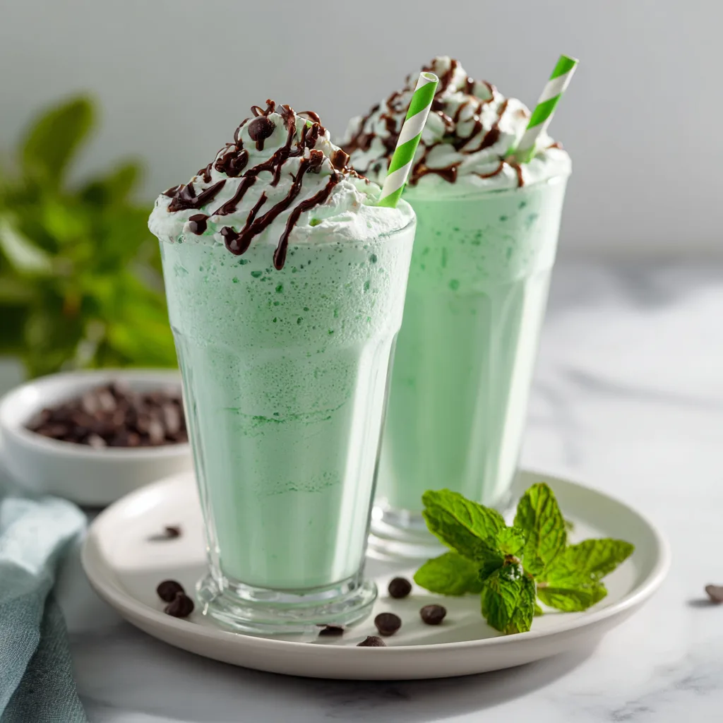 A creamy, minty green milkshake you can make at home, perfect for St. Patrick’s Day or a refreshing dessert.