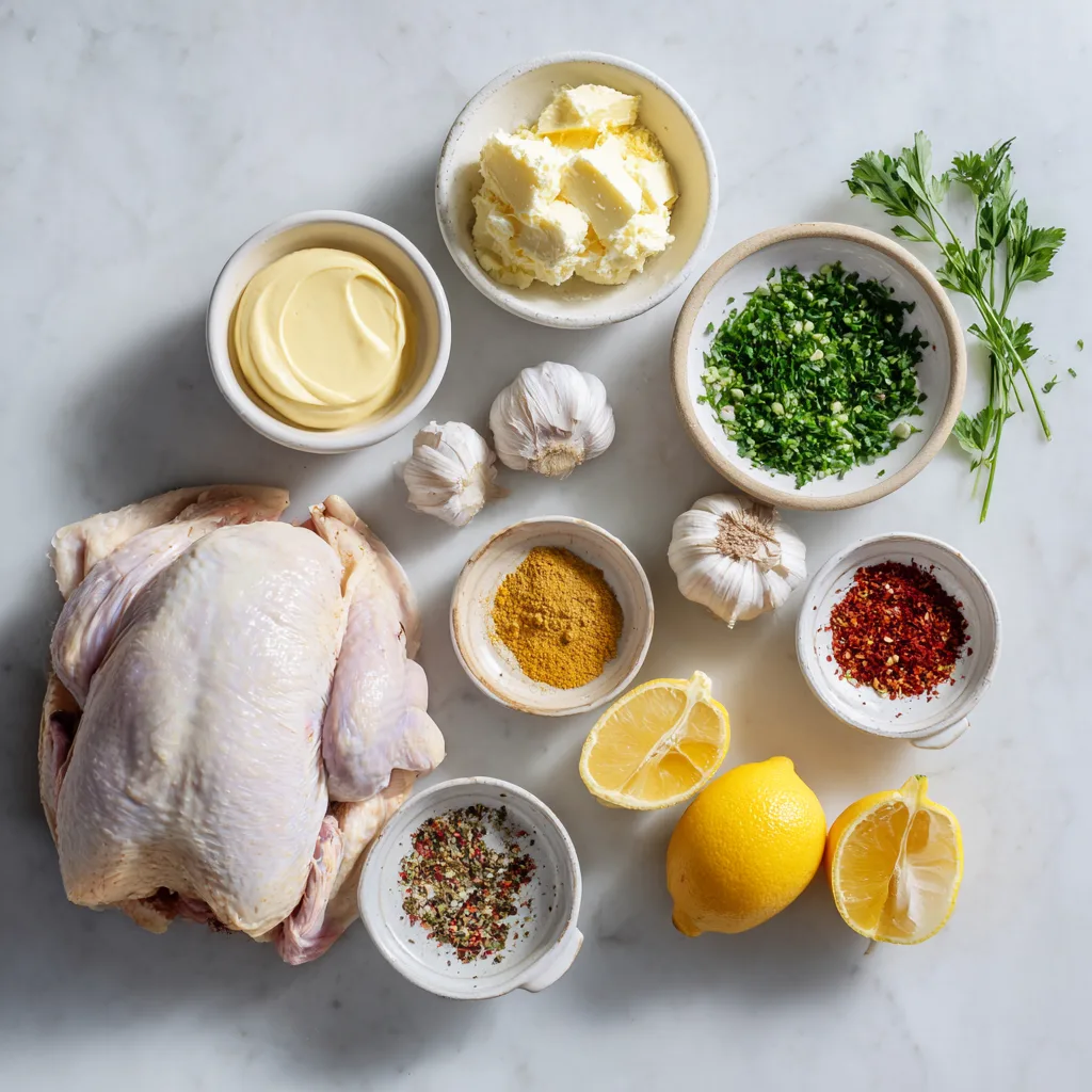 Gently lift the skin of the breast and thighs. Spread a thick layer of cowboy butter underneath. This guarantees juicy meat.