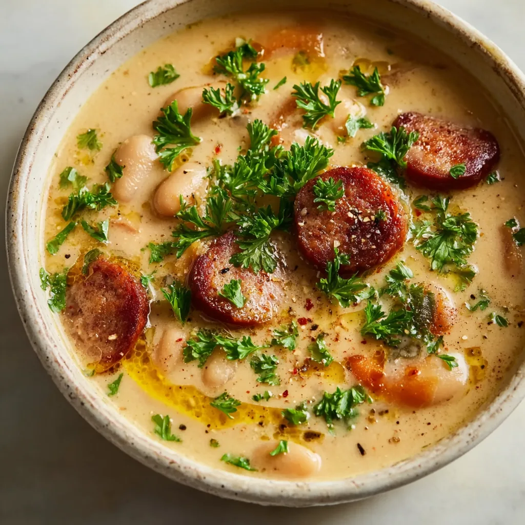 Cozy Creamy Bean Soup with Sausage – A Hearty Bowl of Comfort for Chilly Days
