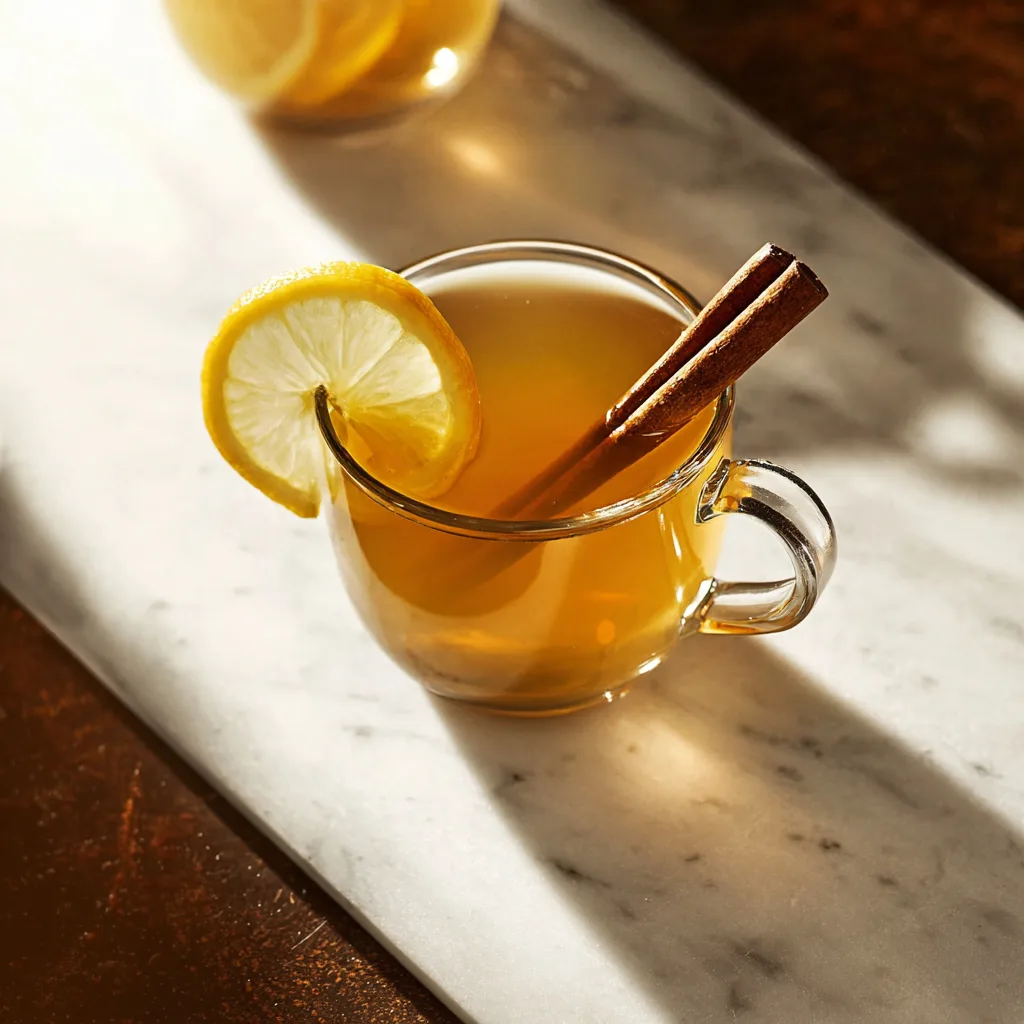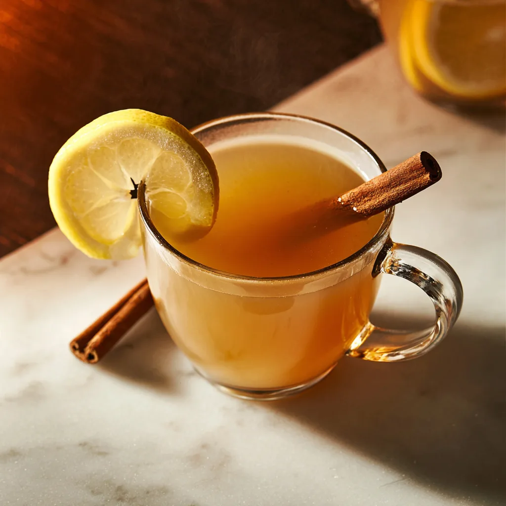 • Hot Water or Spiced Herbal Tea – Forms the comforting base of the toddy.
