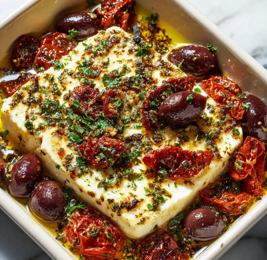 Creamy Baked Feta with Olives & Sun-Dried Tomatoes: A Mediterranean Flavor Explosion