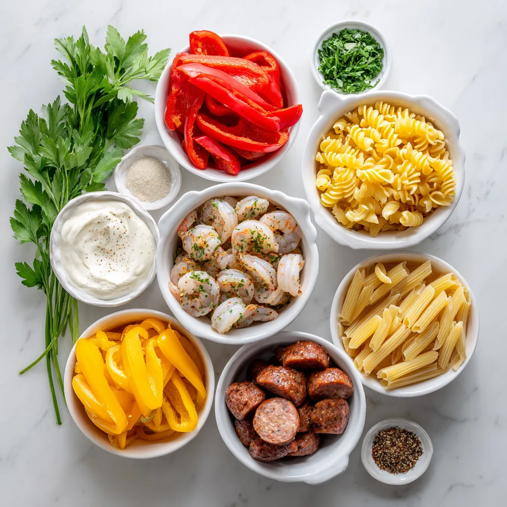 A rich, creamy Cajun pasta with shrimp, sausage, and bold Mardi Gras flavors.