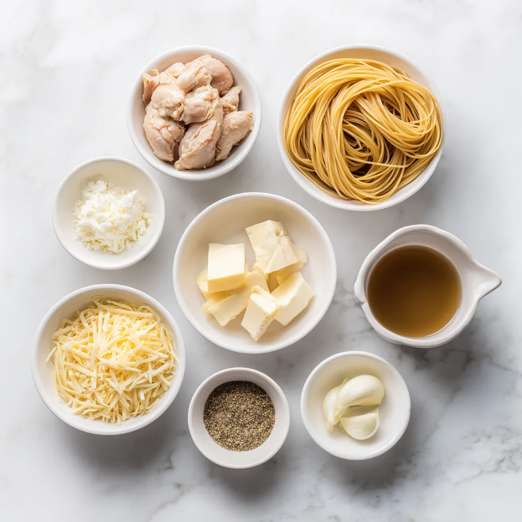 The combination of sautéed onions, garlic, broth, cream cheese, and cheddar creates a velvety cheese sauce that coats every noodle. Meanwhile, shredded chicken adds protein and heartiness, turning the dish into a full dinner with minimal prep.