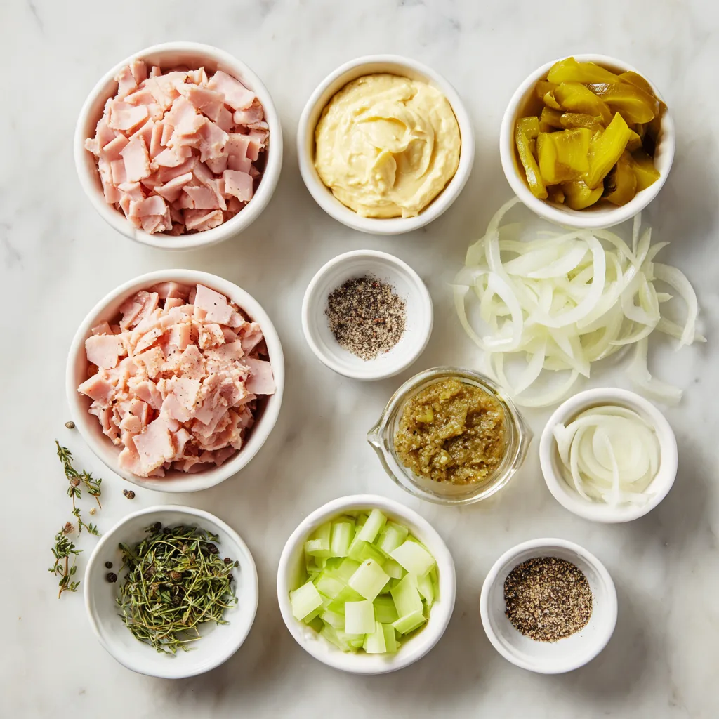 The beauty of ham salad lies in its simplicity. Each ingredient plays a key role in balancing flavor and texture.