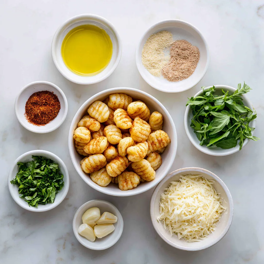 - Toss gnocchi with olive oil and seasonings until evenly coated.
