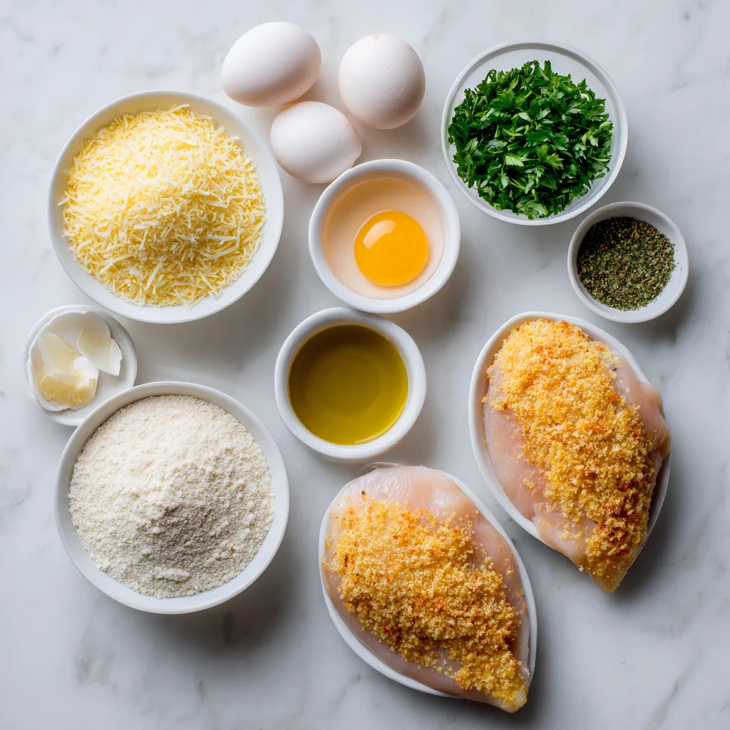 - Prepare breading stations with flour, egg mixture, and Parmesan breadcrumb mixture.