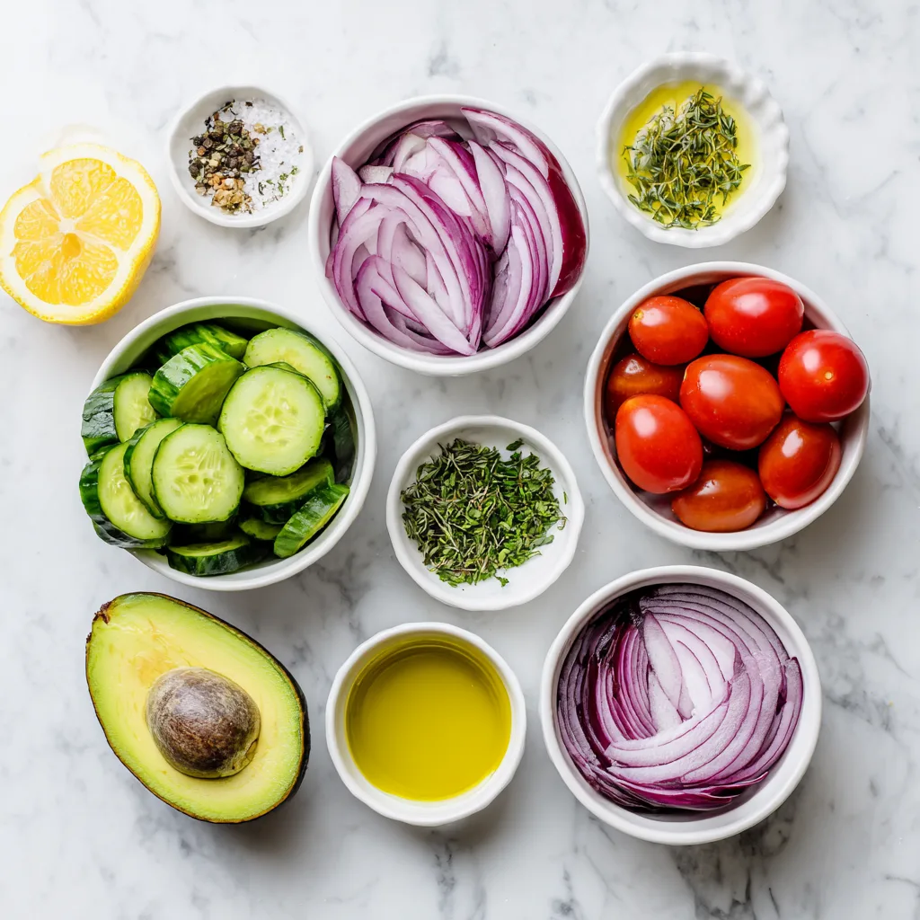 Ingredients for Cucumber Tomato Avocado Salad