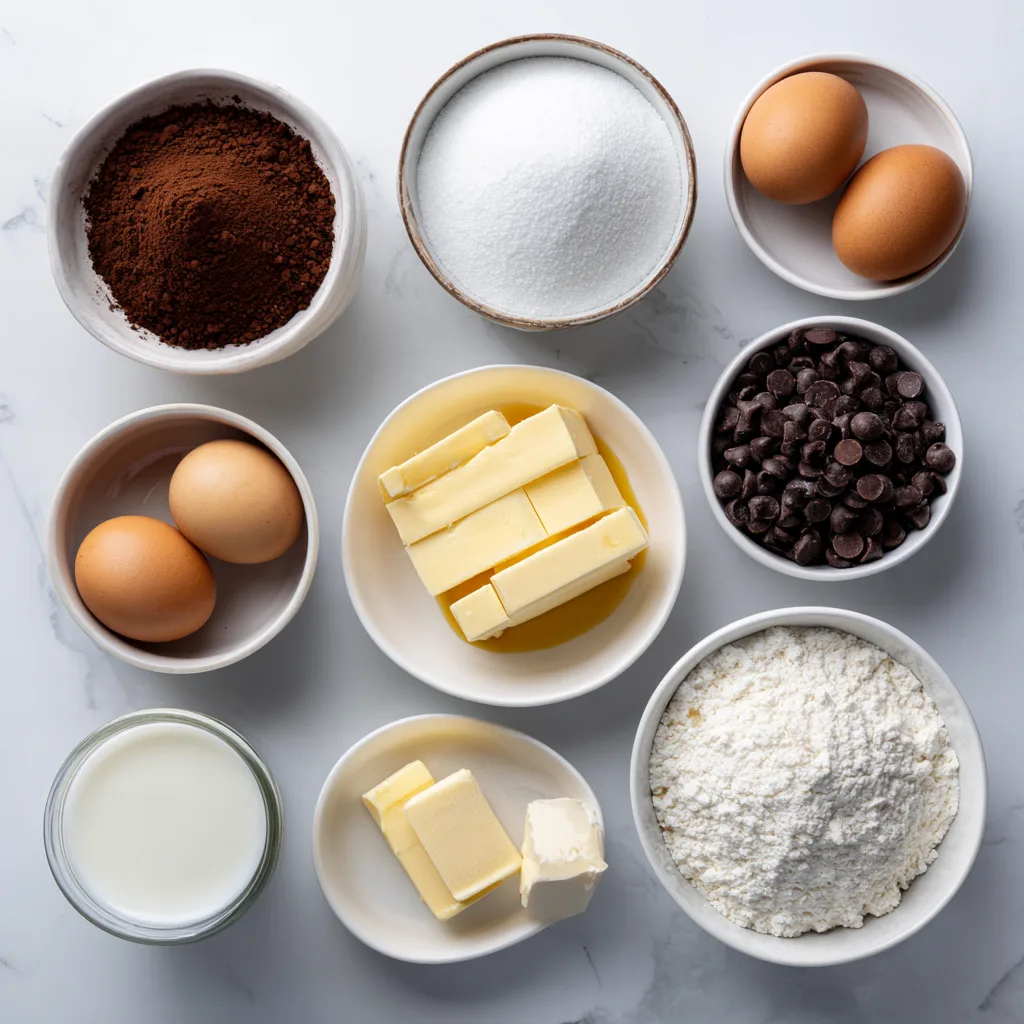 - Whisk together flour, cocoa powder, sugar, baking powder, baking soda, and salt.