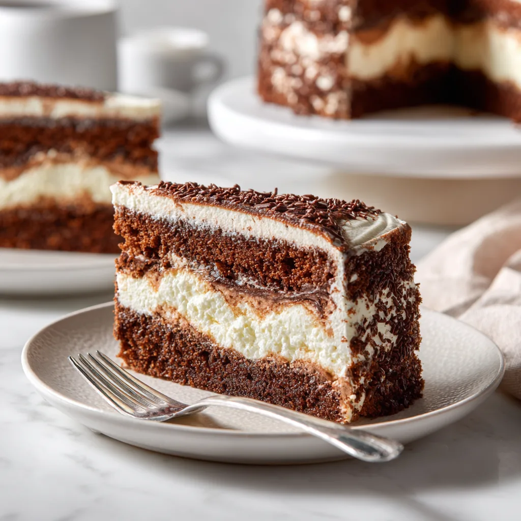 What makes this dessert so special is its balance of textures and flavors. The cake itself is soft and deeply chocolatey, the filling is light and creamy with a hint of vanilla sweetness, and the ganache adds a smooth, rich finish that ties everything together. It’s a dessert that feels both nostalgic and elevated at the same time.