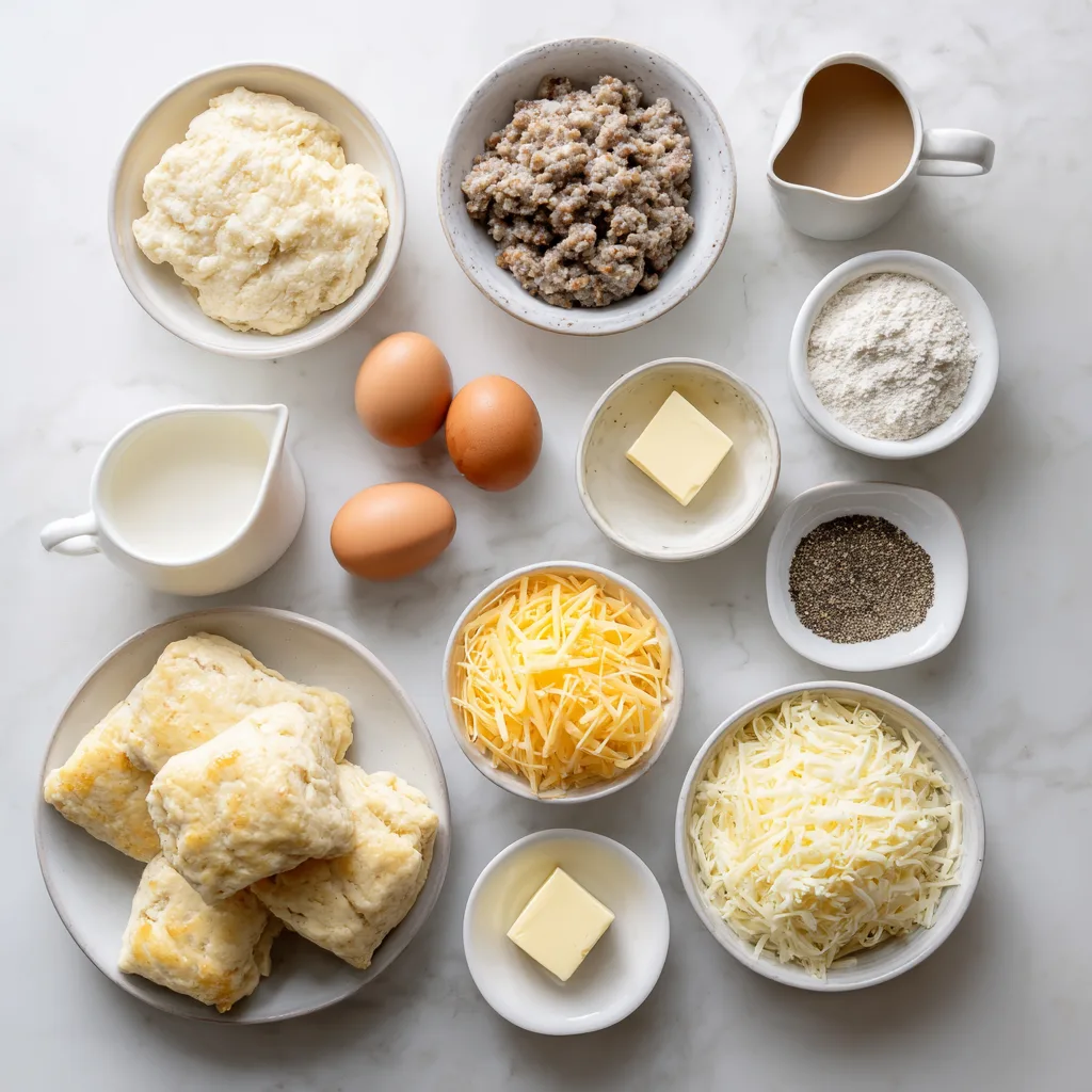 - All-in-One Breakfast: Biscuits, sausage, eggs, and gravy—all in one dish!