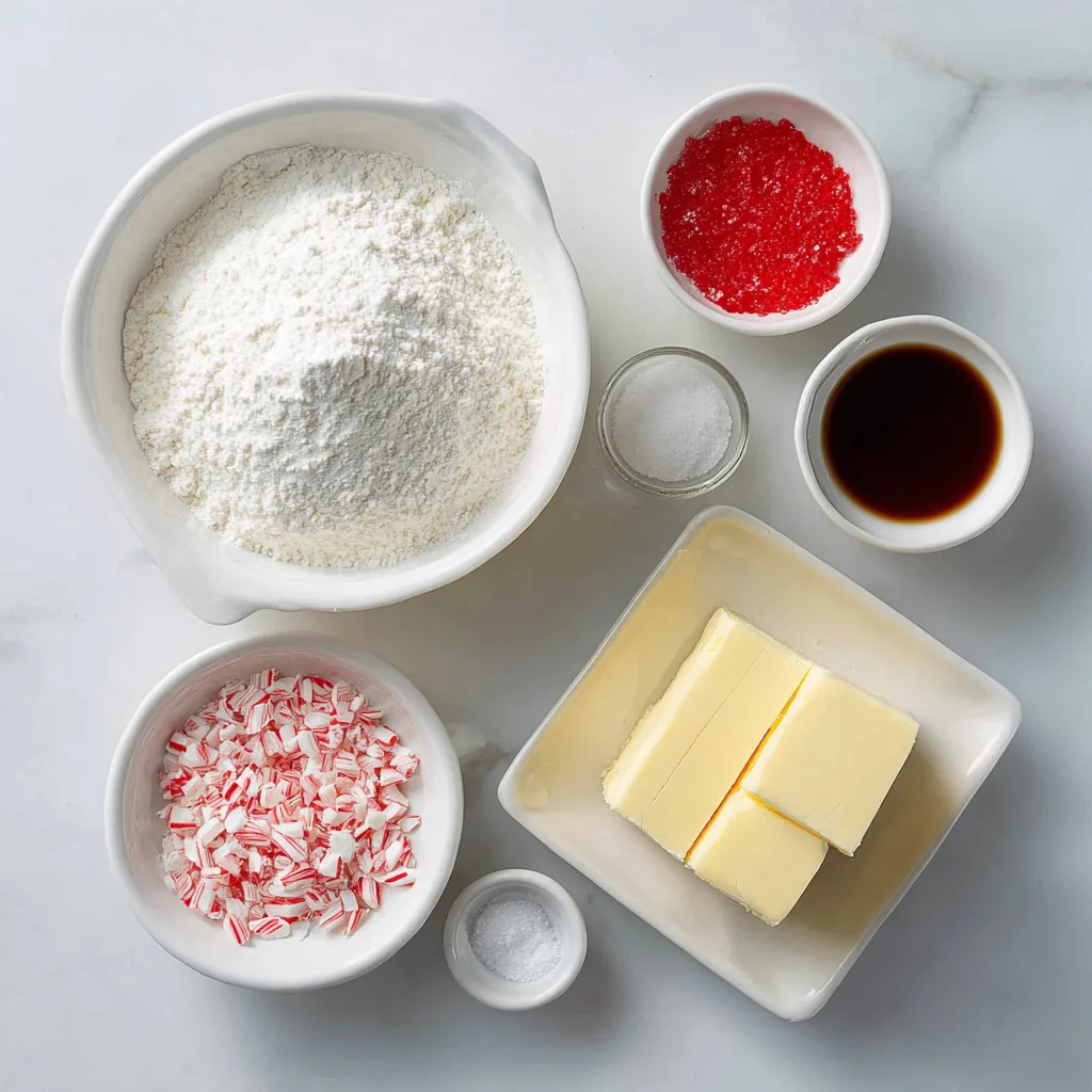 Here’s everything you’ll need to bake a batch of soft, delicious, festive candy cane cookies: