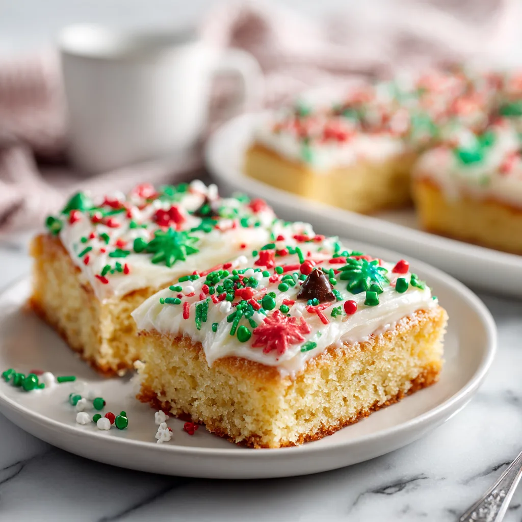 This recipe delivers the best of both worlds: it’s simple enough for a weeknight family treat yet festive enough to steal the spotlight on the dessert table at your Christmas party, school event, cookie exchange, or holiday potluck. Whether you’re hosting a crowd or just baking for fun at home, a sheet cake always guarantees ease of preparation, consistent results, and plenty of servings — making it the unsung hero of holiday desserts.