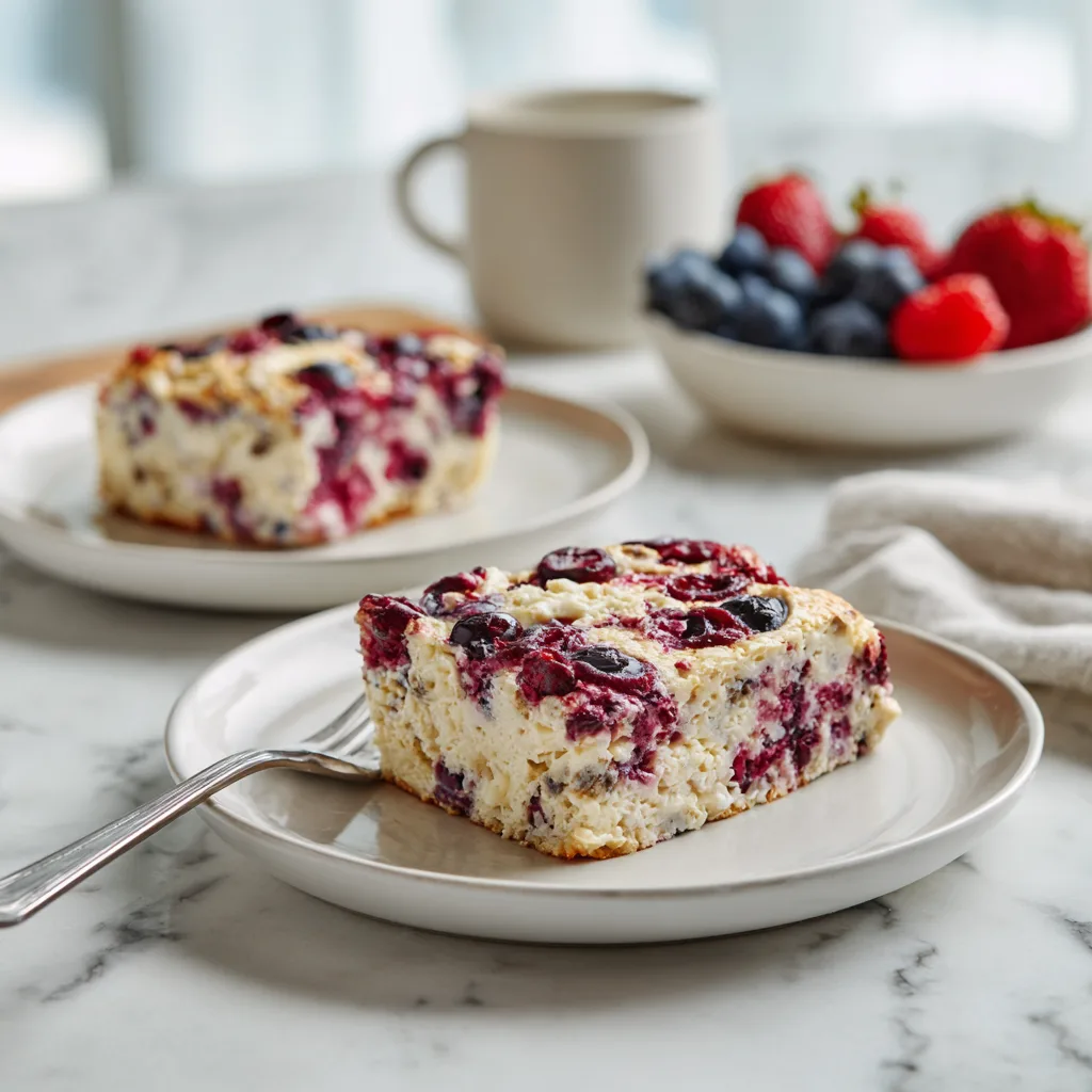 A soft, nutritious berry bake packed with protein from cottage cheese, perfect for breakfast, snack, or healthy dessert.