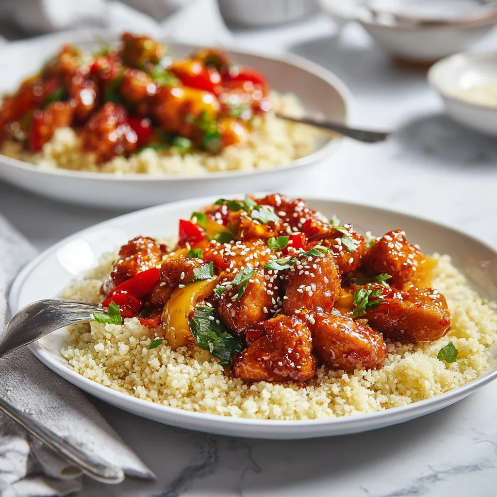 Juicy chicken bites are pan-seared until golden, then coated in a vibrant orange sauce made with real citrus juice, zest, garlic, and ginger. Instead of refined sugar or bottled sauces, this recipe relies on natural sweetness and balanced seasoning. Served over fluffy coconut cauliflower rice, it delivers the satisfaction of a hearty stir fry with a fresh, modern twist that fits beautifully into busy lifestyles.