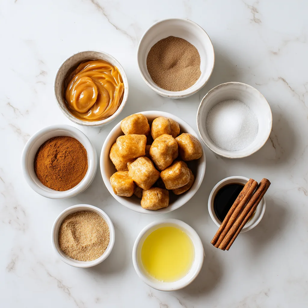 You only need canned biscuit dough, pumpkin purée, butter, brown sugar, and warm spices — items that most fall bakers already have on hand.