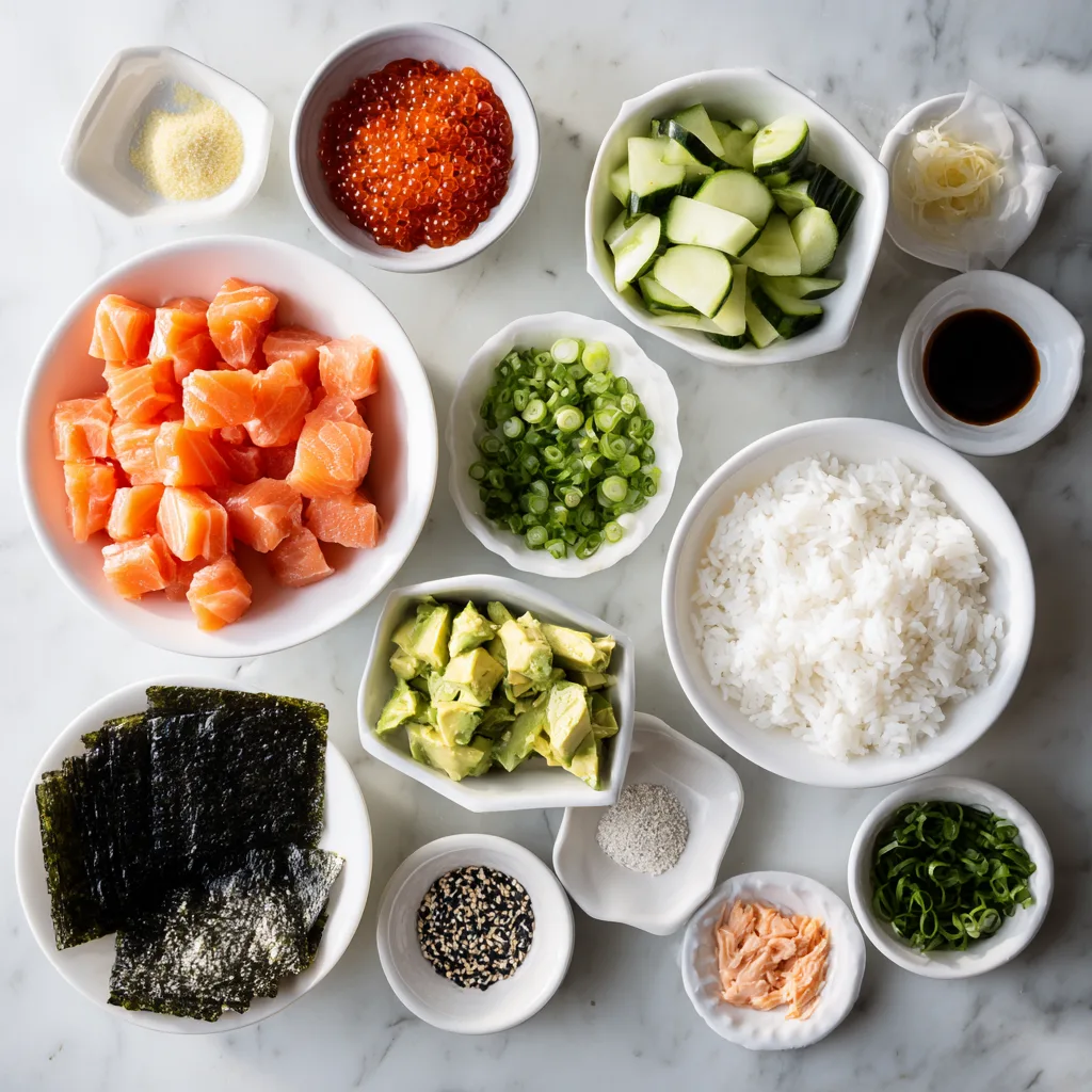 - 1 cup sushi-grade salmon, diced (or imitation crab)