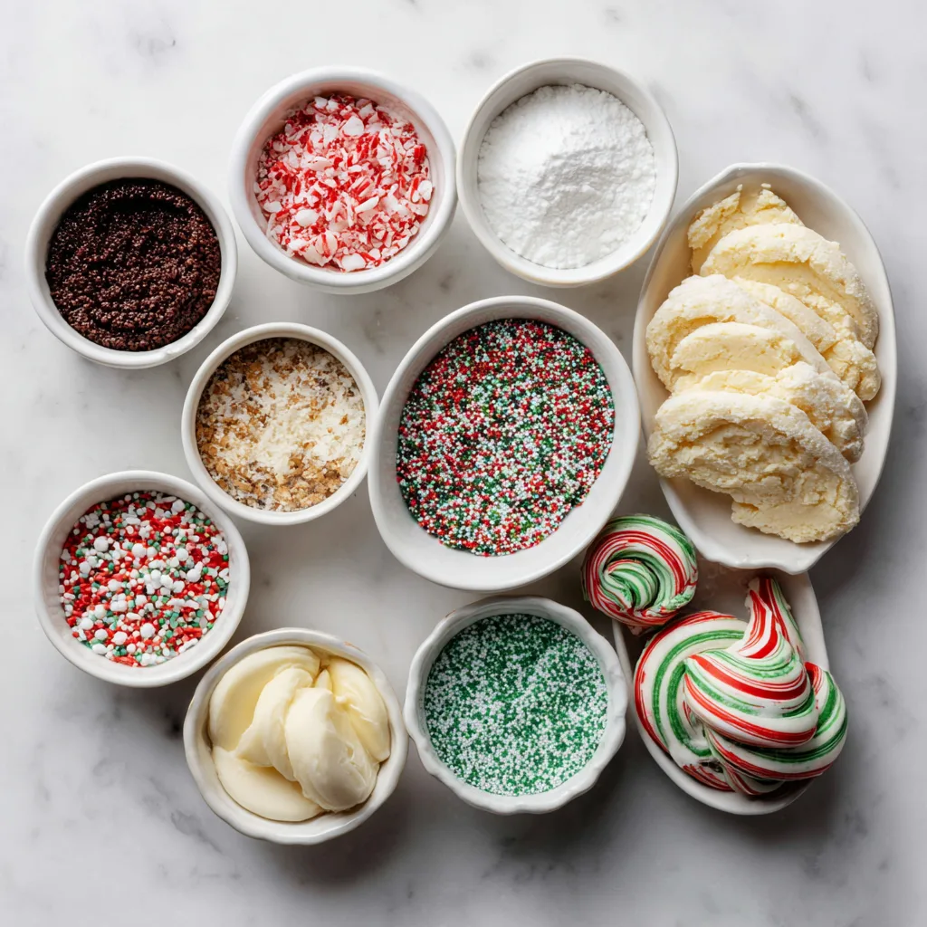 2. Festive sprinkles – Use classic red, white, and green nonpareils, jimmies, or sugar crystals.