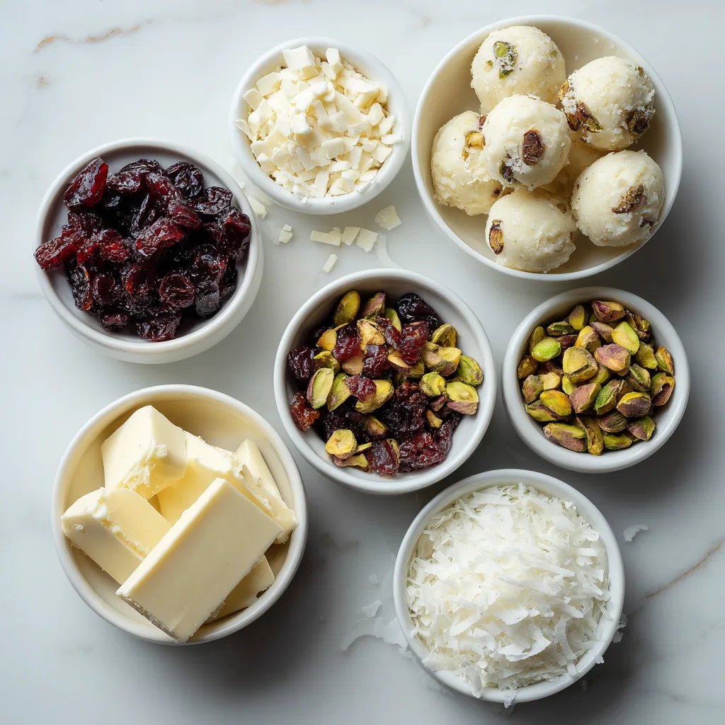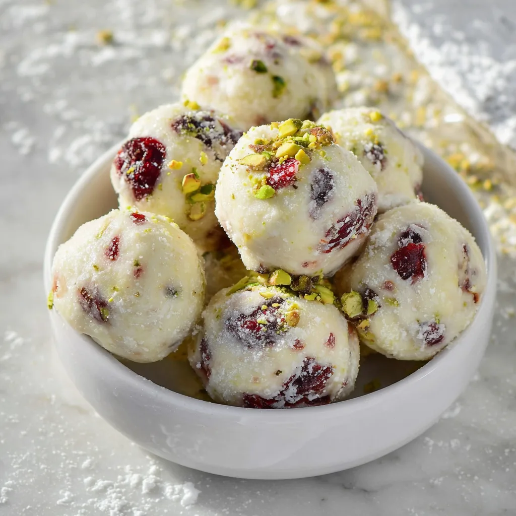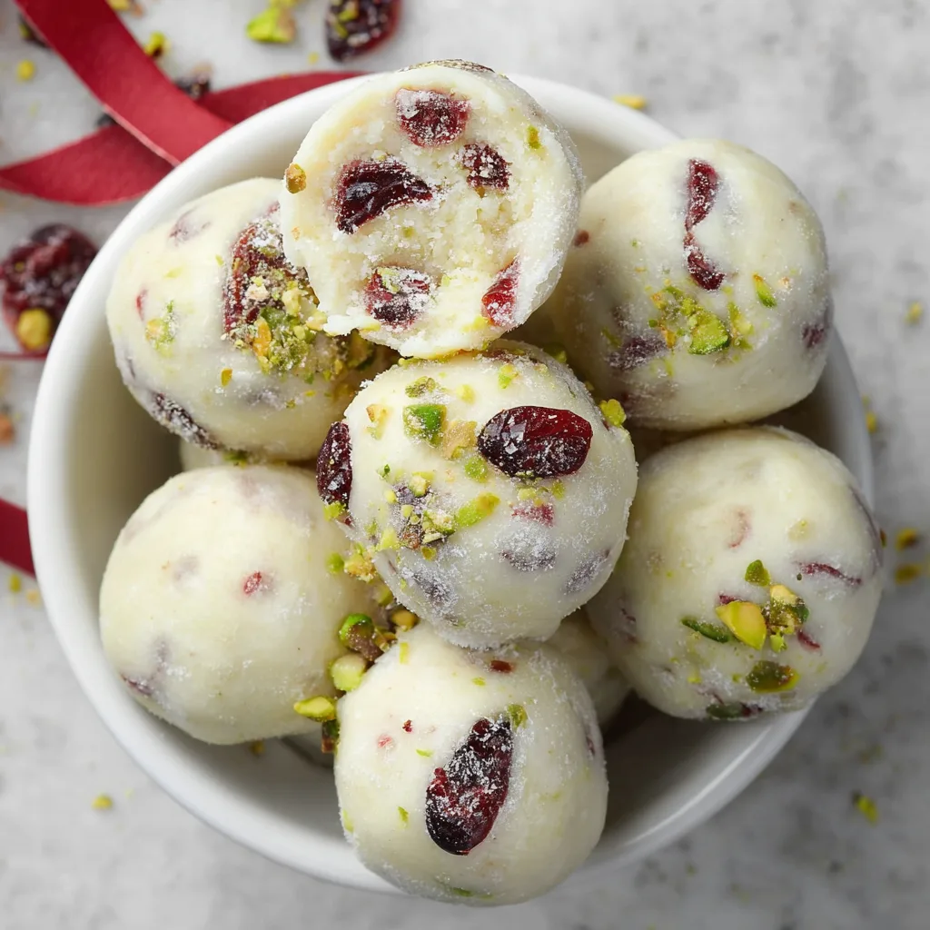 Easy White Christmas Truffles with Cranberries and Pistachios