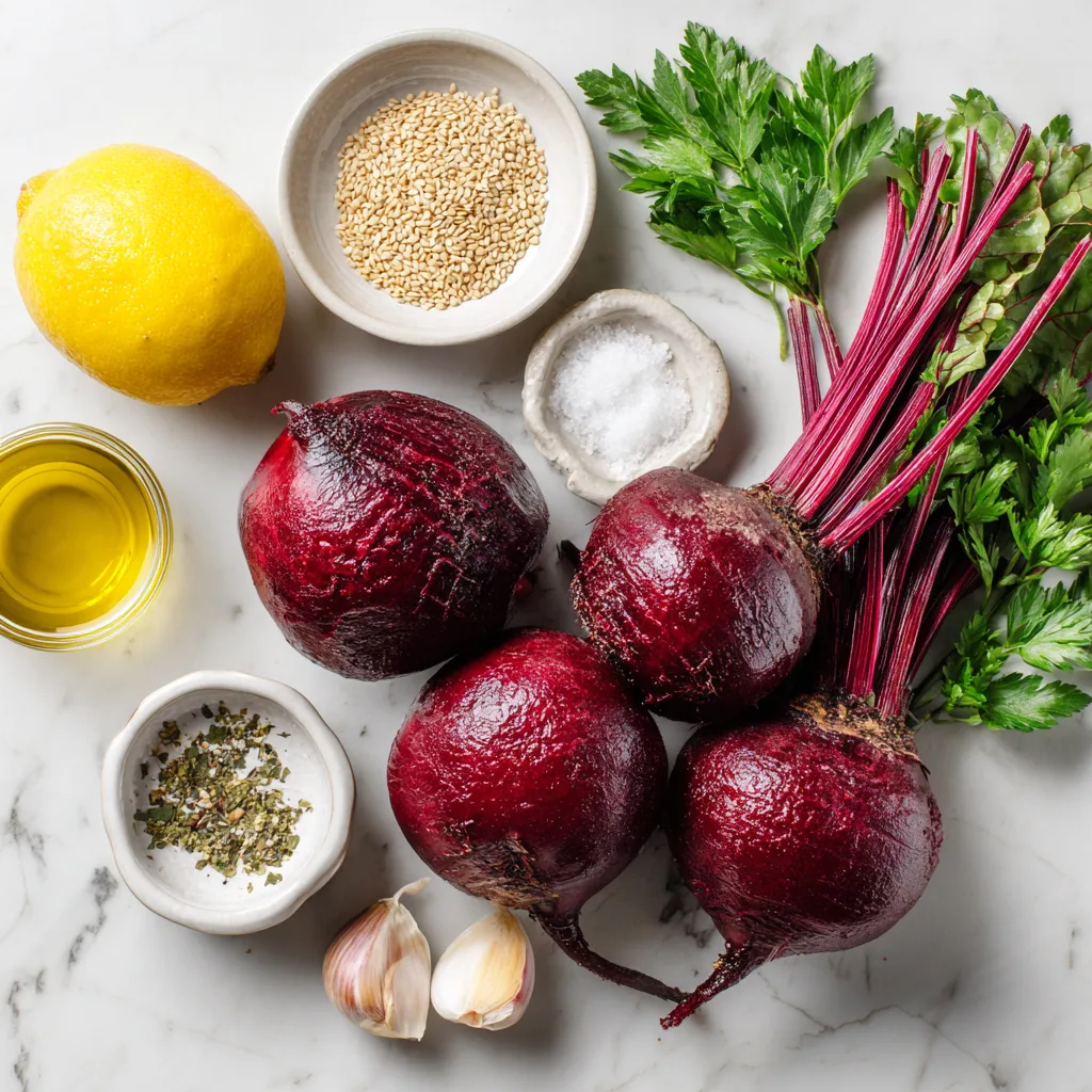 The acidity of the lemon is essential—it brightens the beets, balances the sweetness, and helps mellow the raw garlic.