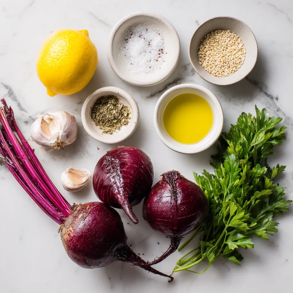 The acidity of the lemon is essential—it brightens the beets, balances the sweetness, and helps mellow the raw garlic.