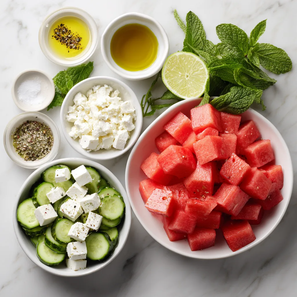 Fresh Watermelon Salad with Feta and Cucumber