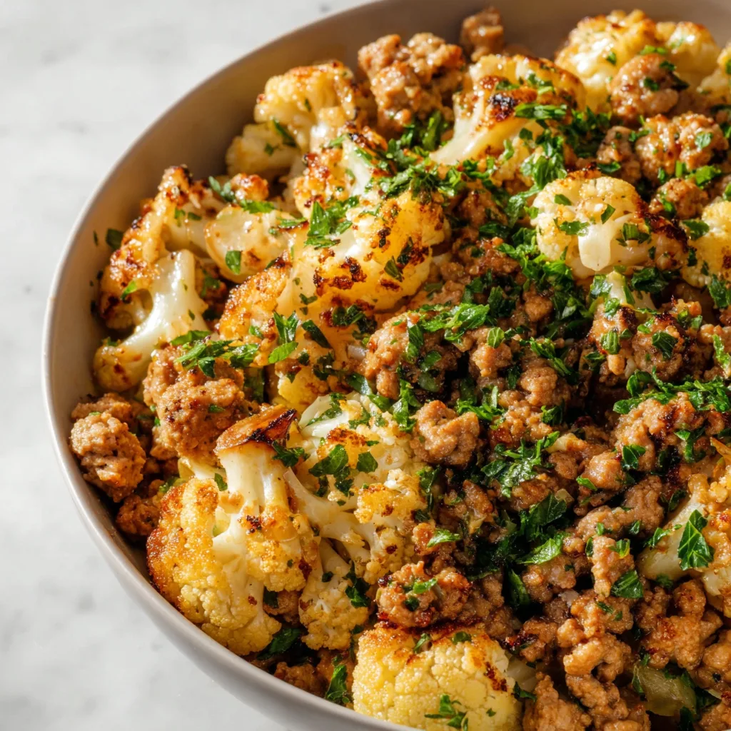 This dish blends the savory richness of garlic butter with tender browned ground turkey and lightly caramelized cauliflower. It’s satisfying enough to enjoy on its own but versatile enough to pair with rice, pasta, mashed potatoes, or a salad. Whether you’re eating low-carb, looking for weekly meal-prep inspiration, or simply craving a cozy and nourishing dish, this recipe checks all the boxes.